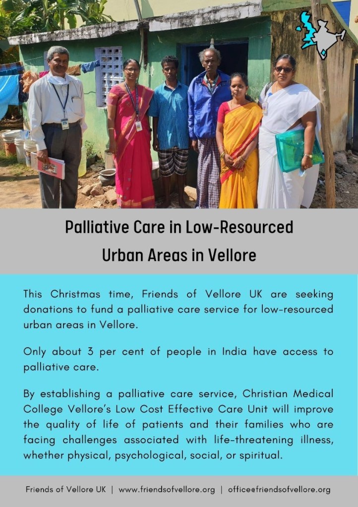 This Christmas time, Friends of Vellore UK are seeking donations to fund a palliative care service for low-resourced urban areas in Vellore.