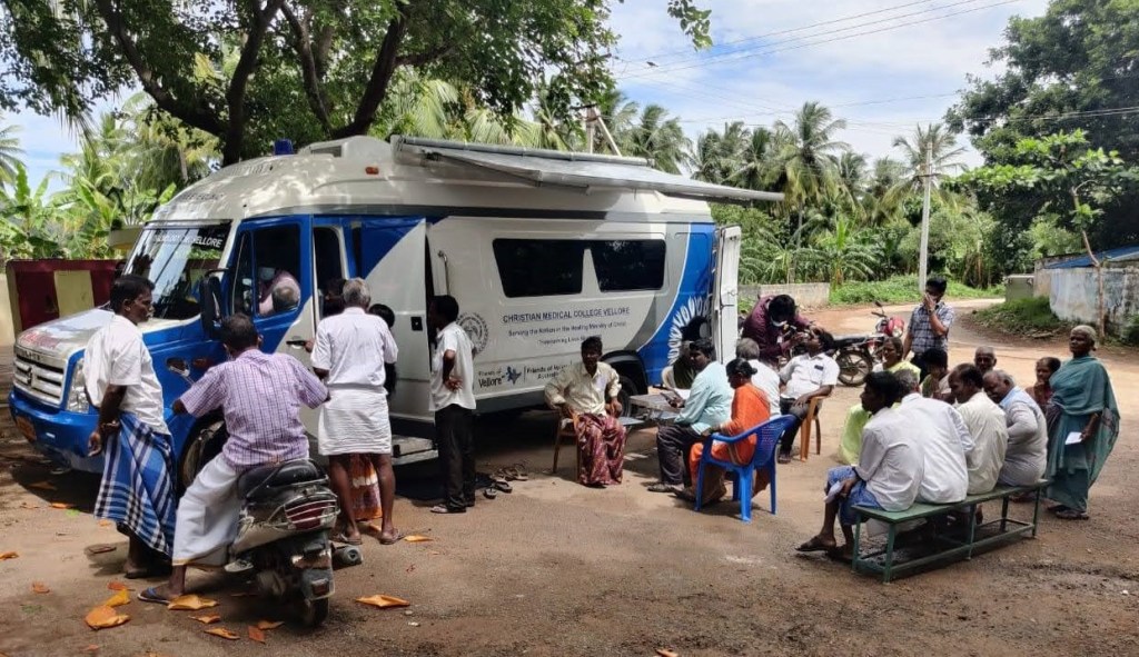 This mobile clinic, which has been operational since September 2022, screens and treats patients with diabetic retinopathy as well as other eye disease in rural areas around Vellore.